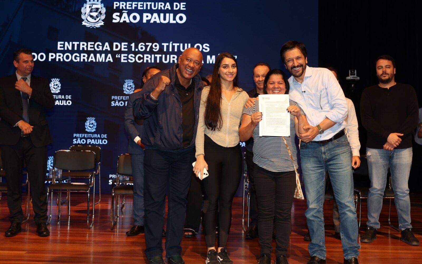 Em 11 de março, o prefeito Ricardo Nunes fez a entrega de mais 1.679 títulos de propriedade por meio do programa Escritura na Mão, beneficiando morado