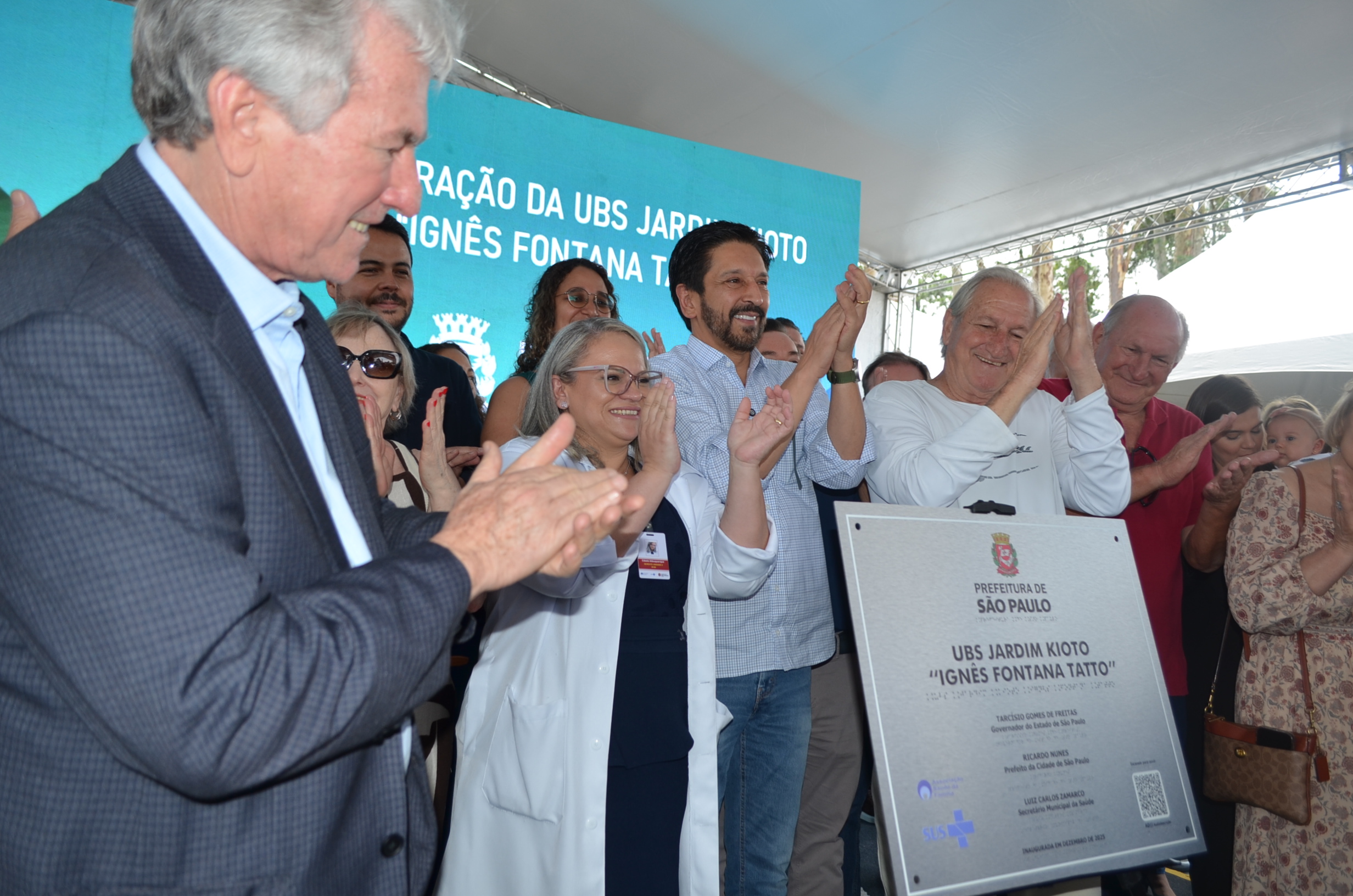 Seu irmão, o deputado estadual Enio Tatto, também elogiou Ricardo Nunes pela implantação da unidade e agradeceu a homenagem feita à sua mãe, batizando a UBS com seu nome.