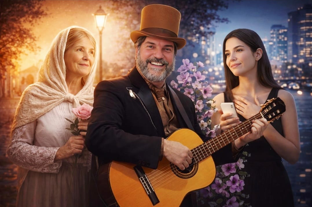 A arte, atemporal, continua sendo ponte entre essas eras. Ela não compara, não rotula, não reduz. Ela revela. E quando a música se aproxima em forma de serenata, há algo simbólico que acontece: o gesto simples de cantar para alguém devolve presença em um mundo distraído. A serenata pausa o tempo, honra histórias, reconhece a mulher não como espectadora, mas como protagonista da própria jornada.