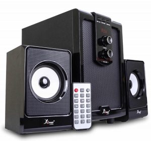 O sistema é composto de 2.1 canais, ou seja, dois tweeters e um subwoofer, aquele alto-falante para os sons mais graves. Curtiu? clique aqui para checar as melhores ofertas!