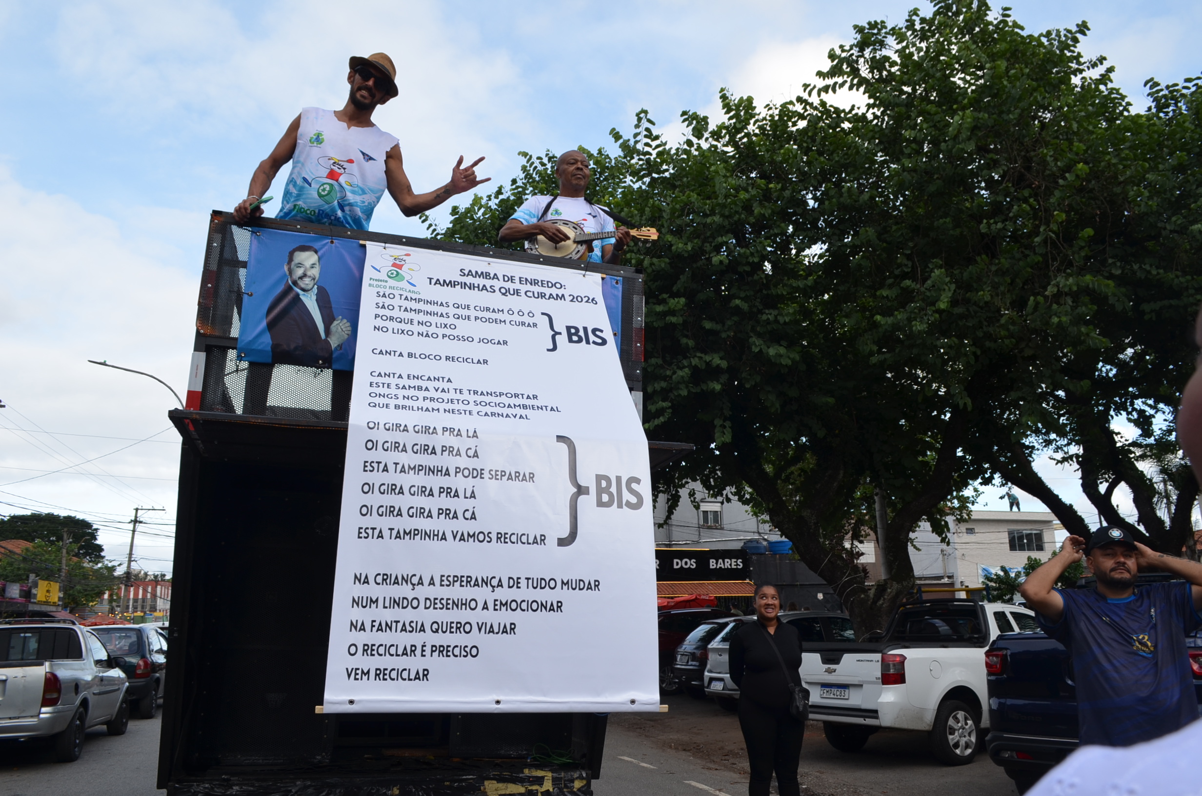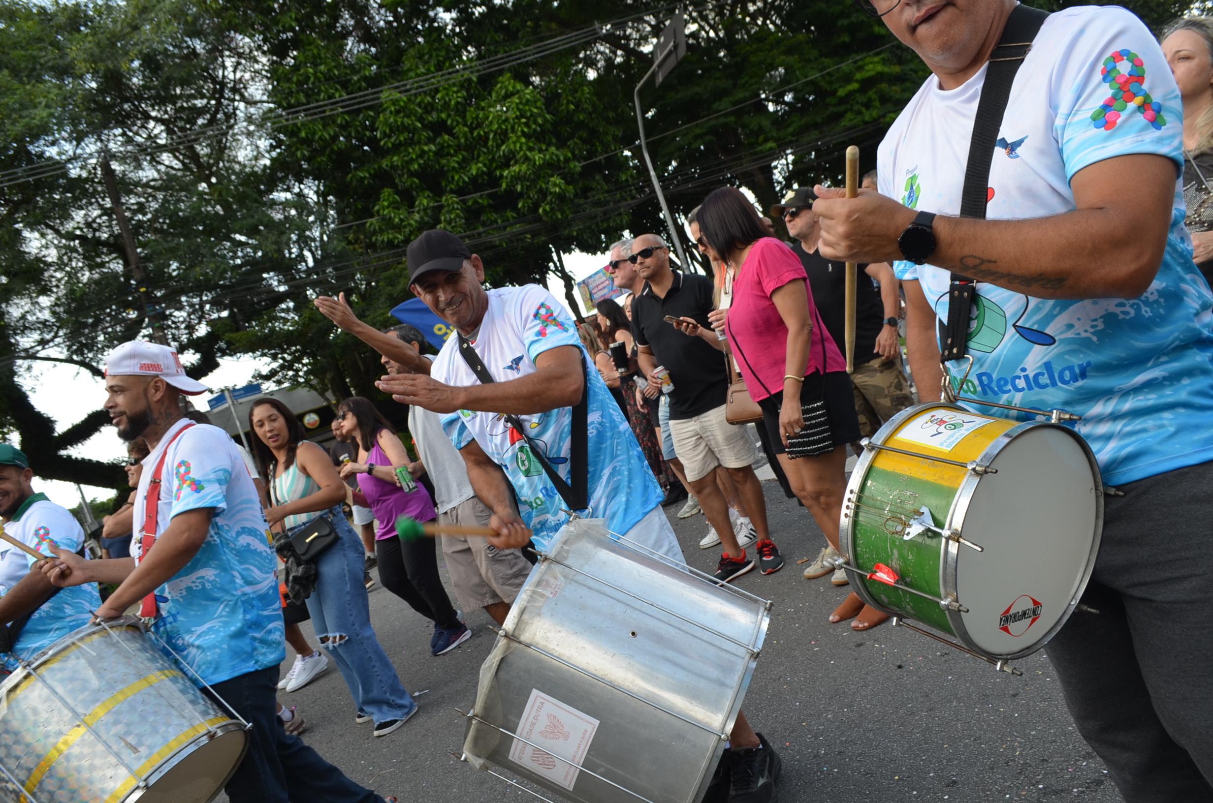 Depois, cantando o samba enredo de 2026 “Tampinhas Que Curam”, o Reciclar saiu com sua bateria, baianas, porta-bandeira, mestre-sala e rainha pela avenida Inácio Cunha Leme, acompanhado pelos foliões, num alegre e festivo desfile.