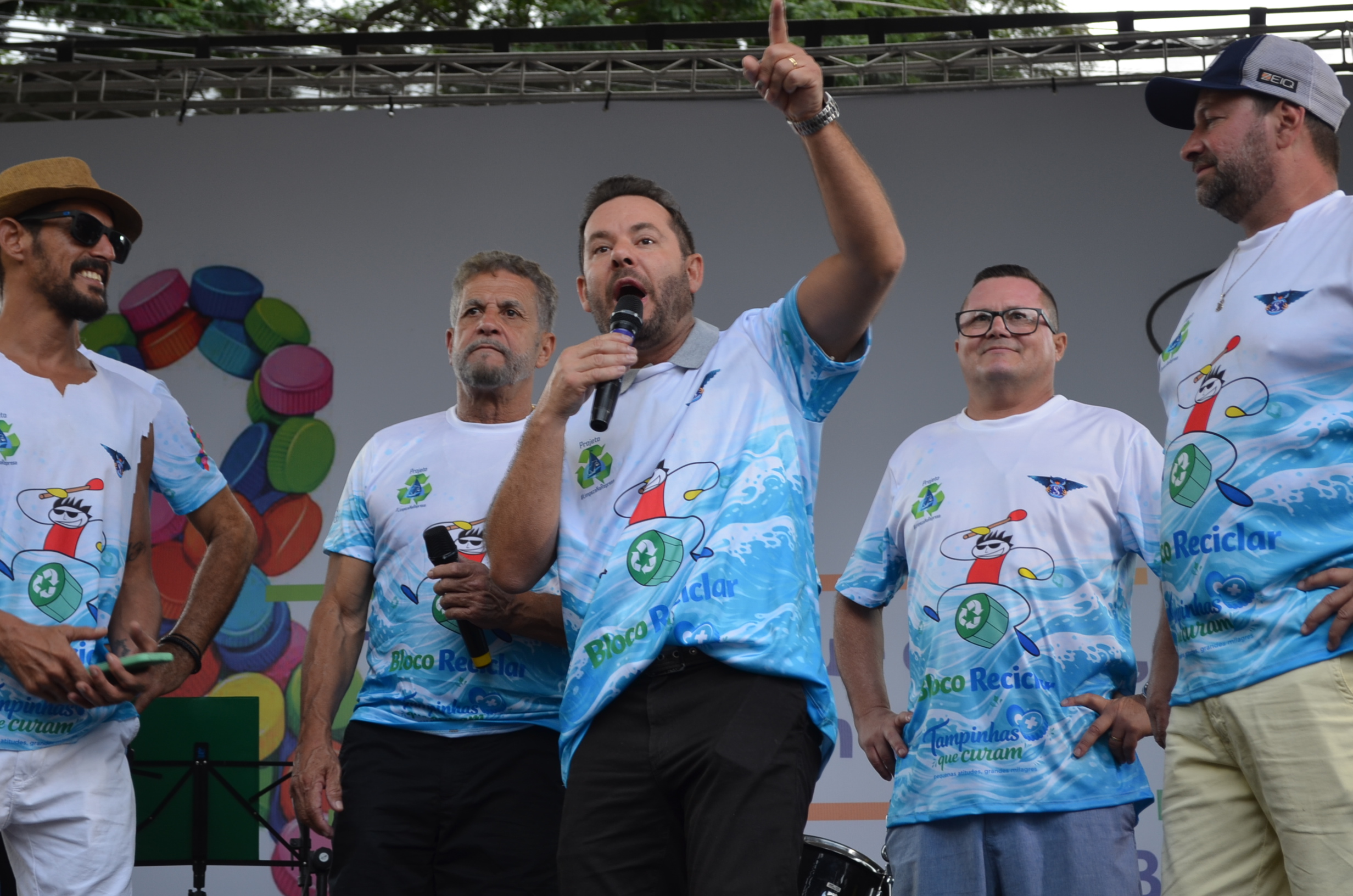 “A cada ano, o desfile do Reciclar fica mais lindo. Gostei do samba enredo, do pavilhão, da organização. Mas, o importante mesmo é o tema reciclar, reciclar as tampinhas, cuidar da nossa cidade, cuidar das nossas represas. E aproveito para agradecer ao prefeito (Ricardo Nunes), que sempre nos atende, e ao deputado Jorge Caruso, nosso grande parceiro”, discursou o vereador Marcelo Messias, ao passar pelo local para ver a festa.