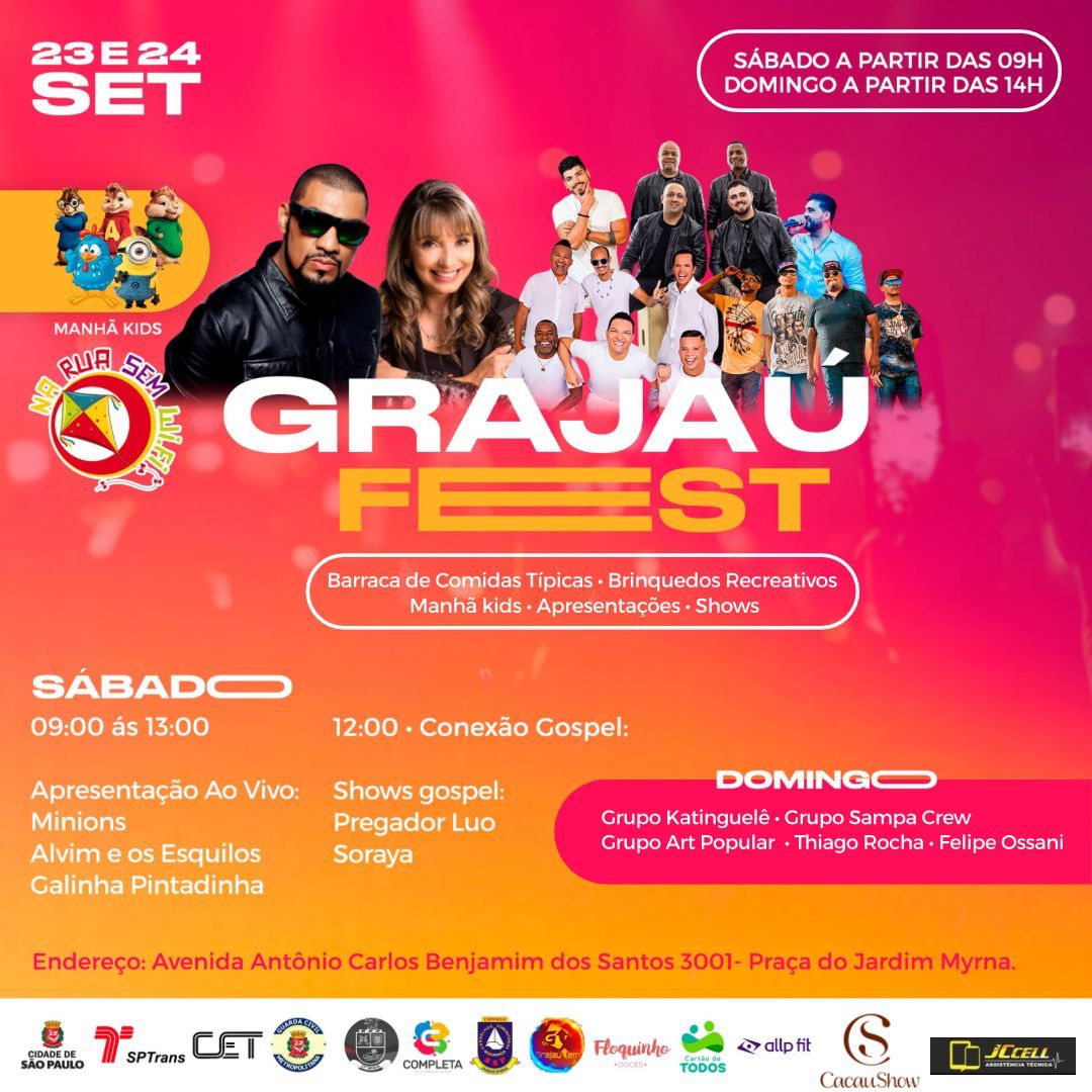 Nos dias 23 de setembro, sábado, e 24, domingo, acontece no Jardim Myrna, região da Capela do Socorro, no extremo Sul paulistano, o Grajaú Fest, considerado um dos maiores eventos musicais da zona Sul.