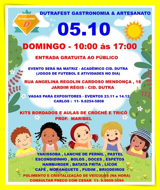 Acontece no próximo domingo, 5 de outubro, das 10h às 17h, uma nova edição da DutraFest – Feira de Artesanato e Gastronomia, em Cidade Dutra, região da Capela do Socorro.
