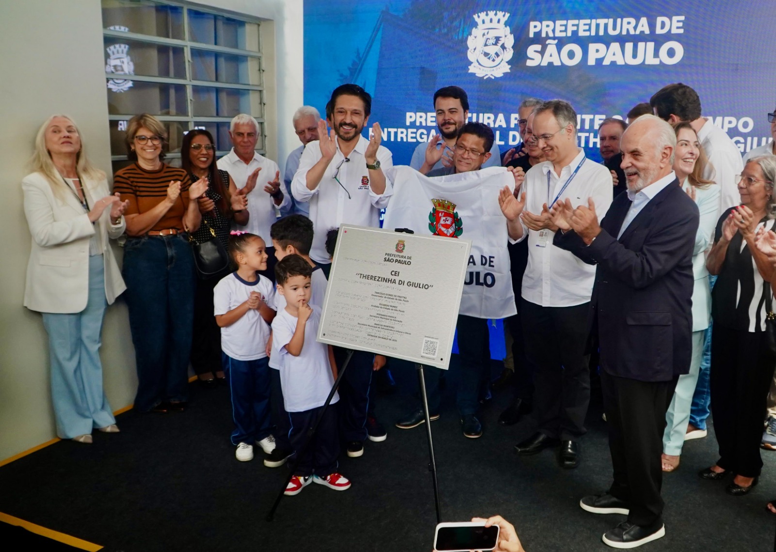 O primeiro compromisso da agenda foi a inauguração oficial do Centro de Educação Infantil (CEI) Therezinha Di Giulio. A unidade tem capacidade para atender 150 crianças de 0 a 5 anos em período integral e recebeu investimento de R$ 9 milhões.