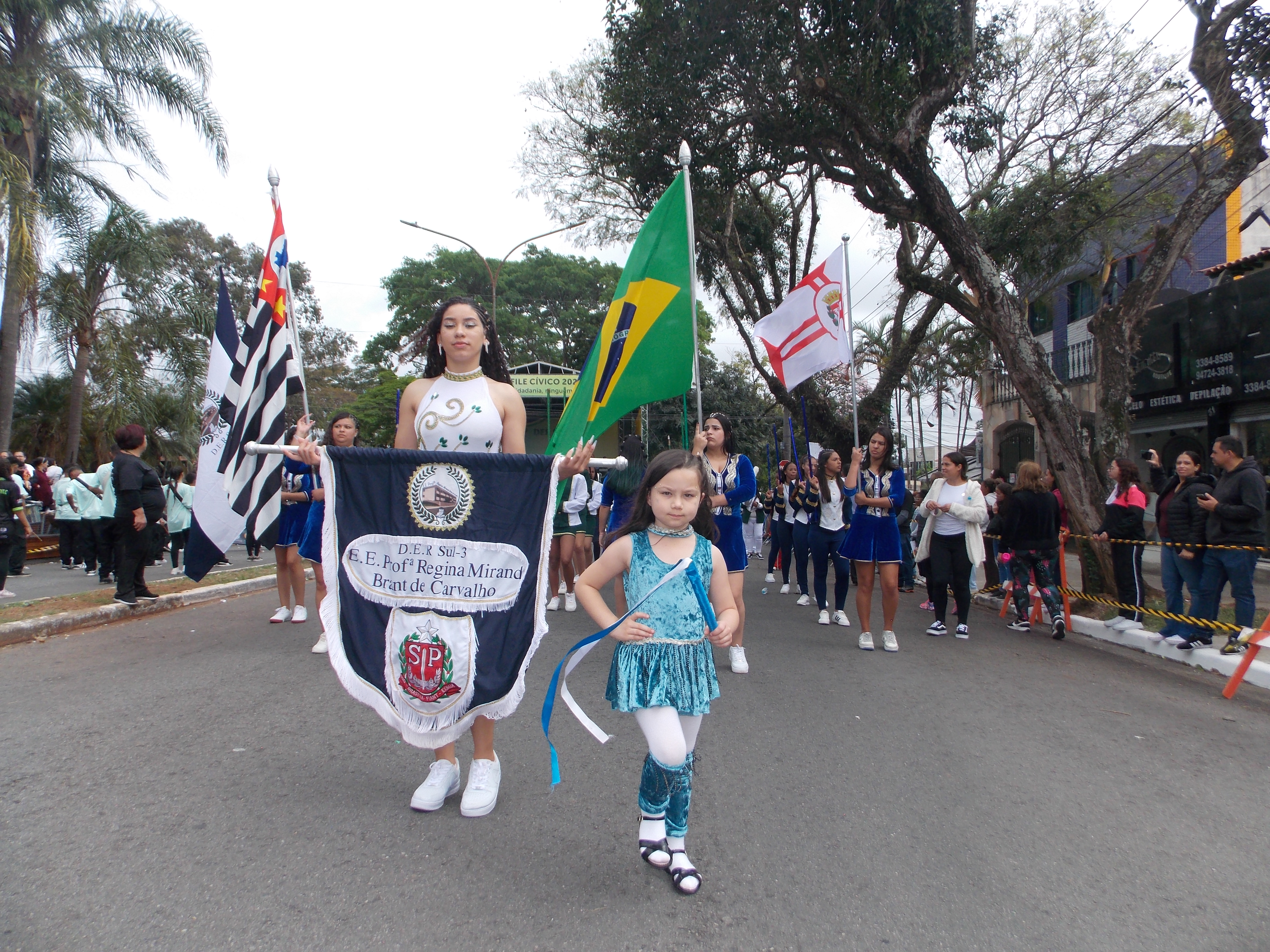 Entre as unidades da Secretaria da Educação do Estado de São Paulo (Seduc-SP), da área da Regional Sul 3, que desfilaram no Jardim Suzana, a fanfarra da Escola Estadual “Professora Regina Miranda Brant de Carvalho” participa ainda do desfile de 7 de setembro no Anhembi.