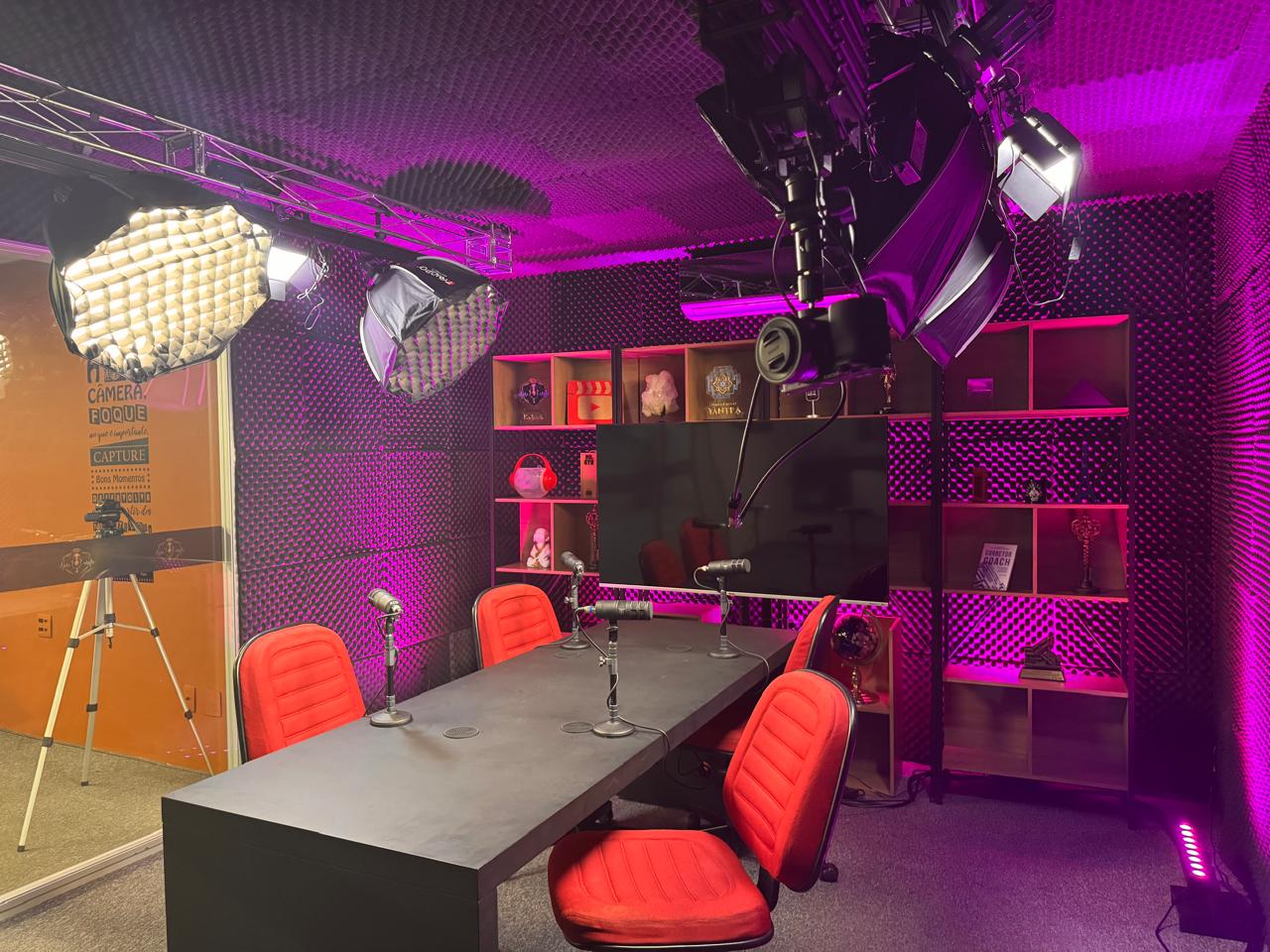 Além de podcasts e videocasts, o espaço também está preparado para gravação de aulas, cursos online, entrevistas, programas institucionais e lives corporativas. A versatilidade da estrutura permite atender desde criadores independentes até empresas que desejam produzir conteúdos de marca, treinamentos e comunicação institucional com padrão profissional.