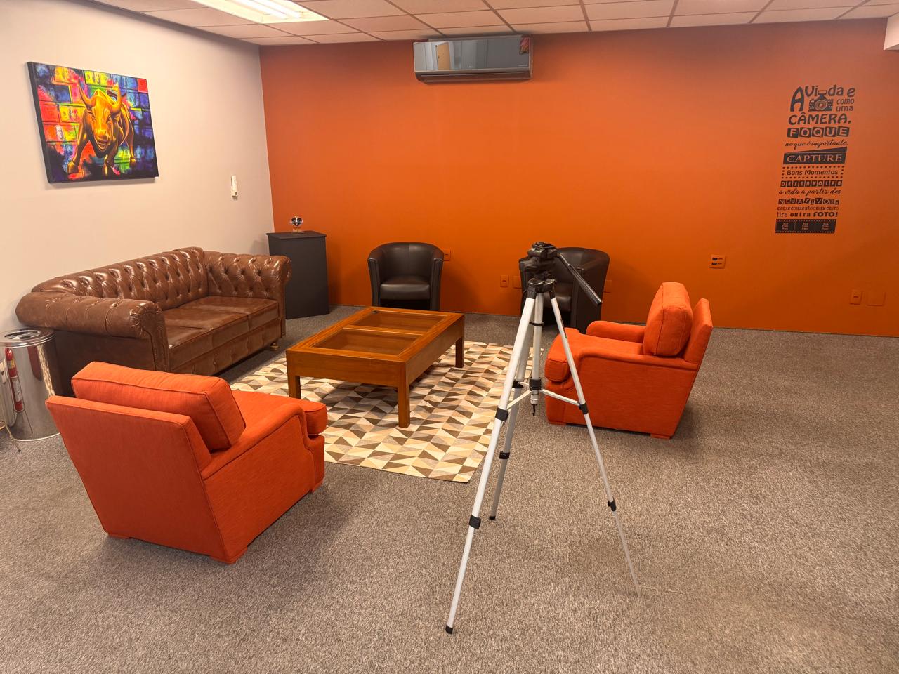 A estrutura inclui ainda recepção e estacionamento no local, facilitando a logística de quem chega para gravar.