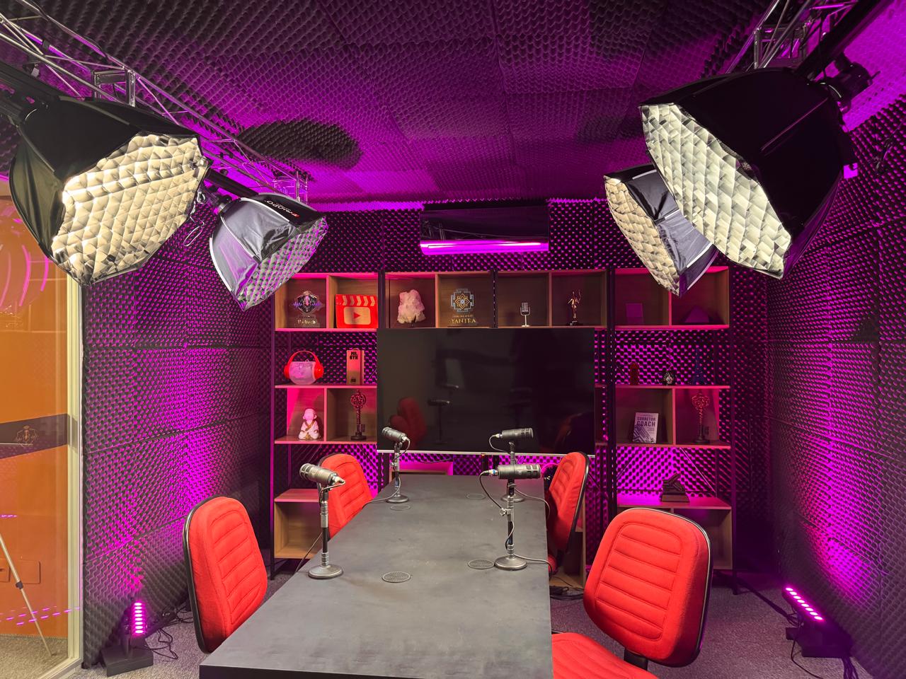 O estúdio foi concebido para oferecer uma experiência completa de gravação. Entre os diferenciais estão o tratamento acústico profissional, iluminação modular adaptável a diferentes formatos de gravação, cenários configuráveis, sistema integrado de áudio e vídeo, sala dedicada à edição e camarim para preparação de convidados.