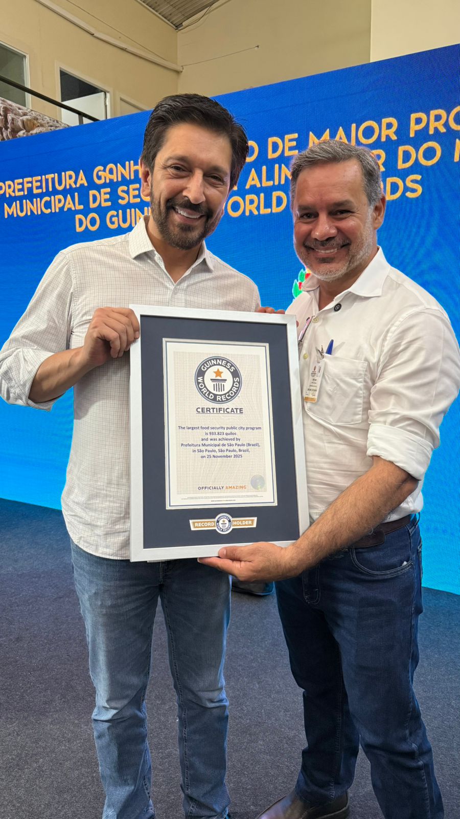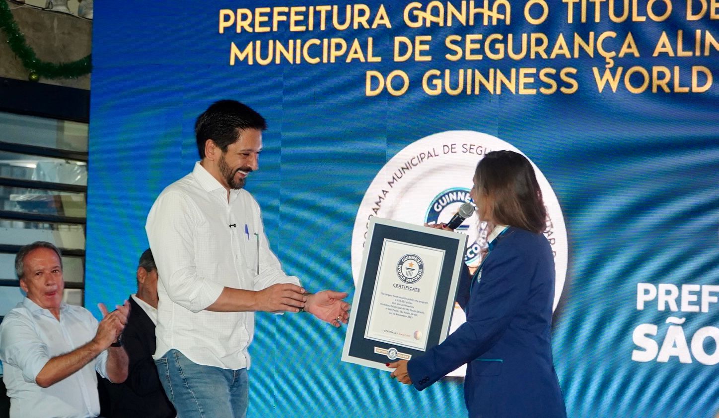 A conquista, que estabelece o modelo paulistano como referência internacional, reconheceu a política pública permanente da capital paulista de acesso digno e contínuo à alimentação para a população. O recorde foi estabelecido após auditoria do Guinness comprovar a distribuição de 933,8 toneladas de alimentos em 24 horas. A Prefeitura informa que distribui mais de 3 milhões de refeições por dia.