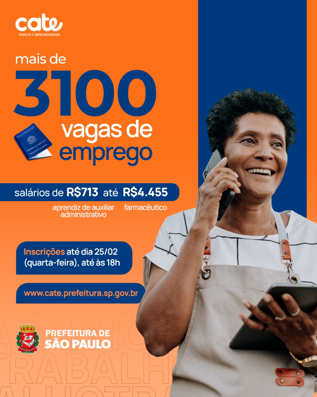 Quem busca emprego na capital encontra nessa semana no Centro de Apoio ao Trabalho e Empreendedorismo (Cate), da Prefeitura de São Paulo, várias oportunidades.